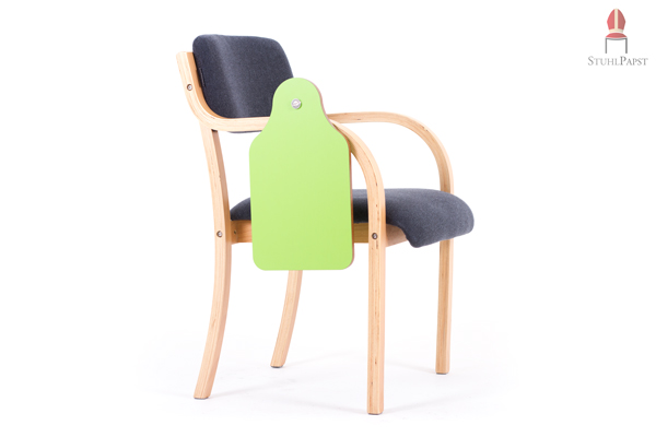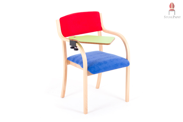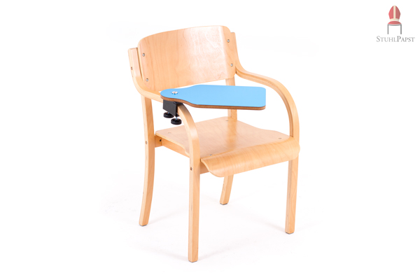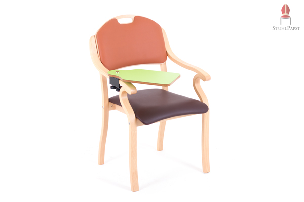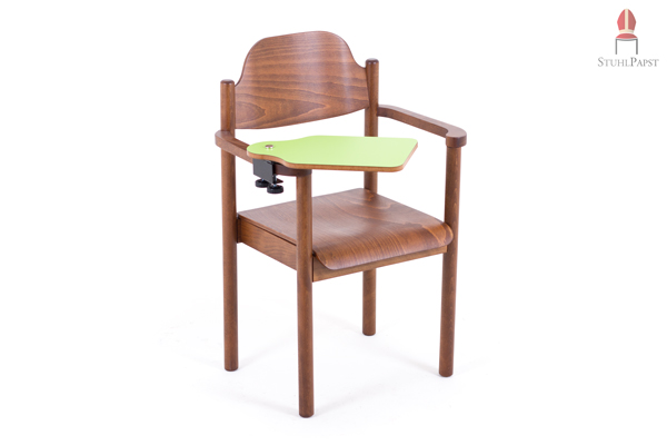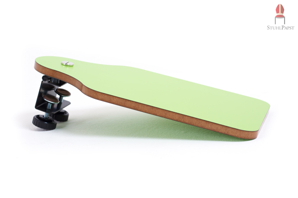 Auch von ihrem Dekor erfüllt die "Uni.versal Schreibplatte" alle Wünsche. Um sie auf unterschiedlichsten Armlehnenstühlen einsetzen zu können, egal welche Grundfarbe sie haben, ist die Platte in verschiedensten Tönen erhältlich. Die Palette enthält schöne und kräftige Farbtöne, aber auch helle oder dunkle Holztöne. So kann die montierbare Platte auch eine ästhetische Erweiterung Ihres Stuhles und Ihrer Einrichtung sein. Mit der Schreibplatte kann auch ganz kreativ umgegangen werden, selbst kontrastierende Farben können so auf einen Stuhl aufgebracht werden.