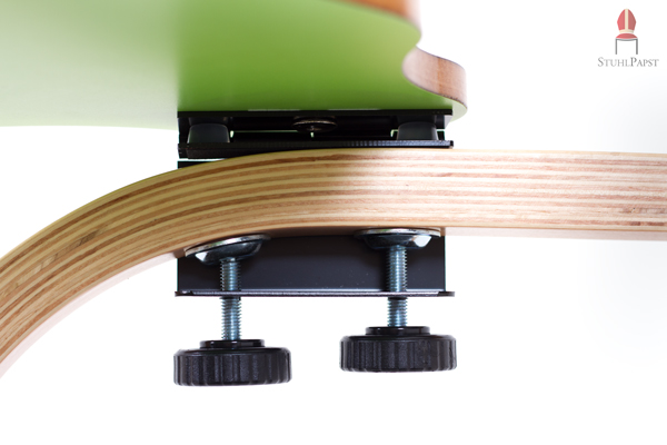 Die "Uni.versal Schreibplatte" ist ganz einfach anzubringen. Die kinderleichte Montage erfolgt über zwei Klemmschrauben, mit welchen ein kleiner Metallrahmen, der die Schreibplatte hält, an der Armlehne angebracht wird. Dafür ist so gut wie keine körperliche Kraft und auch kein Werkzeug erforderlich. Es spielt auch keine Rolle, ob die Armlehne, welche die Platte halten soll, gerade läuft oder gewölbt ist, die Halterung passt sich an, da die Endstücke der Schrauben sich flexibel an die jeweilige Oberfläche anpassen. Möglich ist die Anbringung der "Uni.versal Schreibplatte" an Armlehnenstühlen mit einer Materialstärke von 1,8 cm - 4,0 cm. Dieser patentierte Mechanismus ist so einfach wie solide und arbeitet jederzeit verläßlich und leicht.