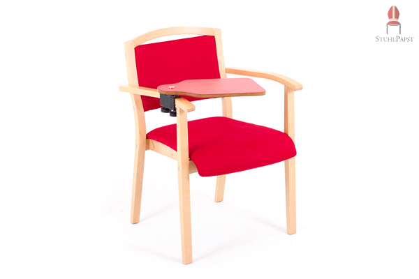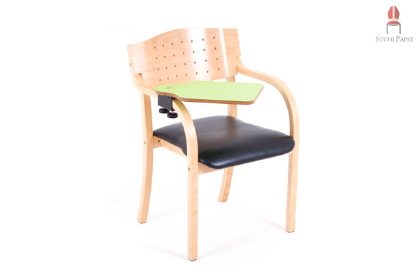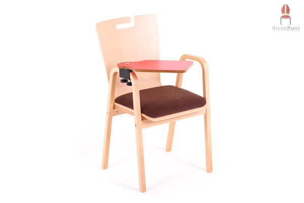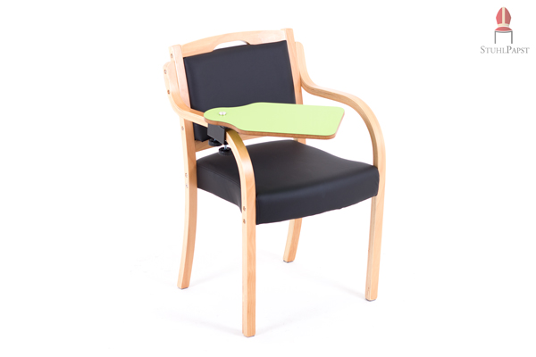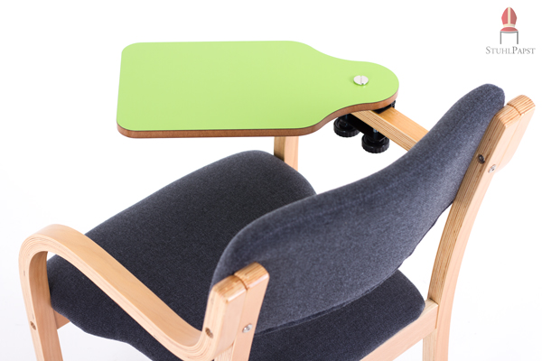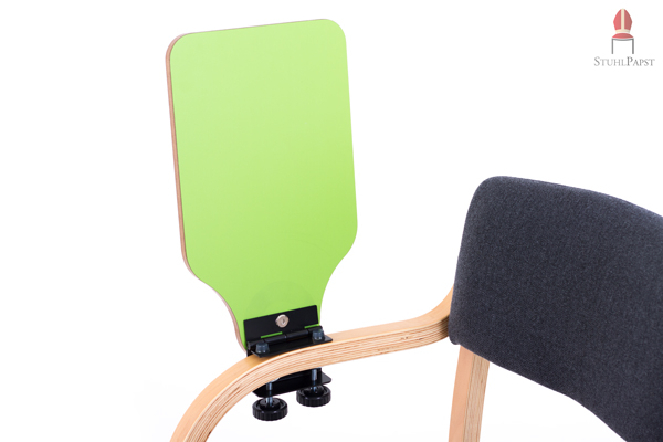 Sie haben einen Armlehnenstuhl und würden ihn gerne auch zum Schreiben einsetzen? Sie haben einen mit Armlehnenstuhl ausgestatteten Raum, den Sie kurzfristig für ein Seminar oder für einen Vortrag ausstatten wollen? Sie wollen einen bestuhlten Raum flexibel nutzen aber dafür nicht immer Tische hin- und herschieben? Mit unserer "Uni.versal Schreibplatte" haben Sie die ideale Ergänzung für Ihre Armlehnenstühle und können absolut flexibel arbeiten. Sie können Ihre Stühle kurzfristig und im Handumdrehen mit den "Uni.versal Schreibplatten" ausstatten und haben den optimalen Vortragsraum. Genauso einfach lassen sich die Schreibplatten wieder entfernen und im Raum stehen wieder Ihre komfortablen und entspannenden Armlehnenstühle. Die "Uni.versal Schreibplatte" ist damit nicht nur eine ideale Ergänzung für Ihre Armlehnenstühle, sie erweitert die praktischen Nutzungsmöglichkeiten der Stühle und damit Ihrer Einrichtung. Die Schreibplatte ist, einmal angebracht, absolut stabil und belastbar. Sie können bequem und mit ausreichend Platz auf ihr schreiben. Sie können, während Sie auf dem Stuhl sitzen, kleine Dinge auf der Schreibplatte ablegen. Die Platte kann so eingestellt werden, wie sie gebraucht wird. Wollen Sie aufstehen, wird die Platte einfach nach vorne gedreht.