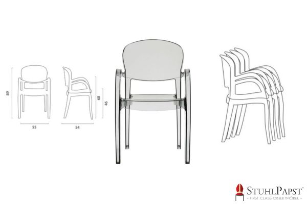 Lieferung Lieferzeit Ca. 1-2 Wochen Bauweise Komplett montiert Maße Gesamtbreite 55 cm Gesamthöhe 89 cm Gesamttiefe 54 cm Armlehnenhöhe 68 cm Sitzhöhe 46 cm Sitzbreite 42 cm Sitztiefe 45 cm Eigenschaften Material Polycarbonat Gestell Polycarbonat Stapelbar Ja Reihenverbinder Nein Gewichtstest Ja Gewicht 4,2 kg Gewicht/ Belastung* 110 kg
