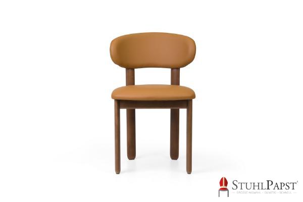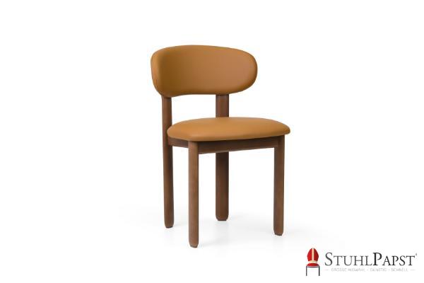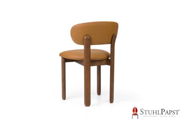 Für den professionellen Gebrauch ist der MÜN.CHEN so konstruiert, dass er Langlebigkeit und Belastbarkeit gewährleistet. Der massiv wirkende Holzrahmen basiert auf stabilen, rund gearbeiteten Stuhlbeinen, die dem Möbel eine skulpturale Wirkung verleihen und zugleich für hohe Stabilität sorgen. Die Rückenlehne ist ergonomisch geformt und ermöglicht in Verbindung mit der gepolsterten Sitzfläche ein angenehmes Sitzgefühl, selbst bei längerer Nutzung. Durch die klaren Konturen und die reduzierte Materialästhetik fügt sich der Stuhl "MÜN.CHEN" nahtlos in hochwertige Einrichtungs- und Architekturkonzepte ein und eignet sich ideal für Restaurants, Tagungsräume, Wartezonen oder Lounge-Bereiche.
