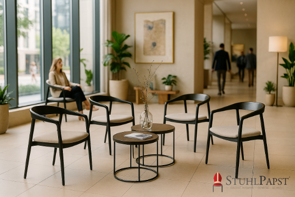 öffentlichen Bereichen eingesetzt werden kann. Ob als Stuhl für Hotel Lounge,