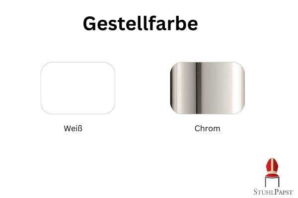 Rahmen ist wahlweise verchromt oder weiß lackiert und verleiht dem Stuhl eine